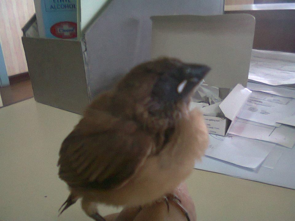 aww..after i had my lunch sa bahay, pagdating sa office, i was surprised when i saw a tweeting little thing on my table..i screamed of course, but after a few seconds i found it really really cute=) nole laughed of course to see me act like that..he told me to feed that baby bird, and take care of it coz i am going to be its new mom..aww really cute little thing.. Love love :)